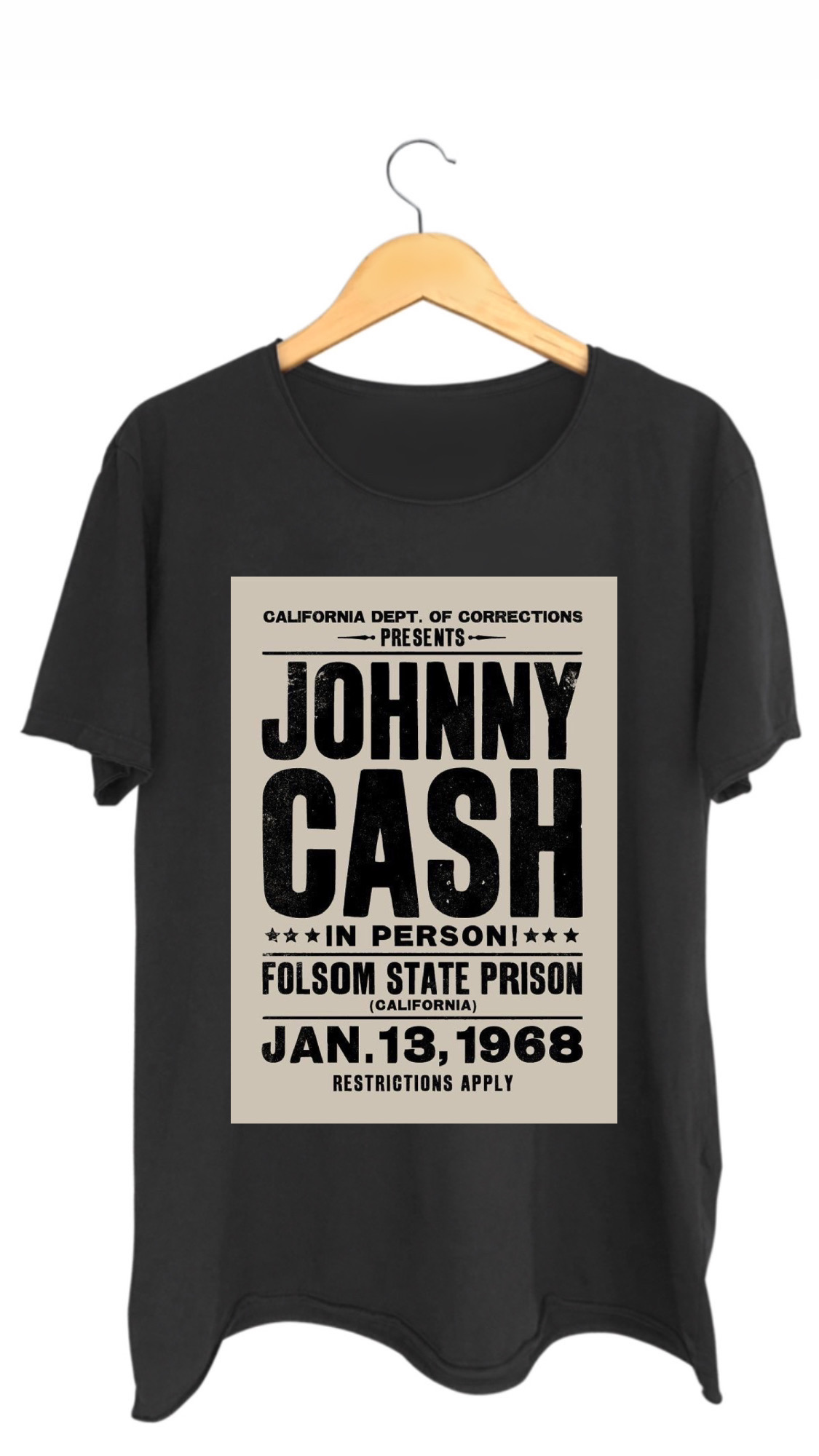 Camiseta JOHNNY CASH - 100% algodão corte a fio preta