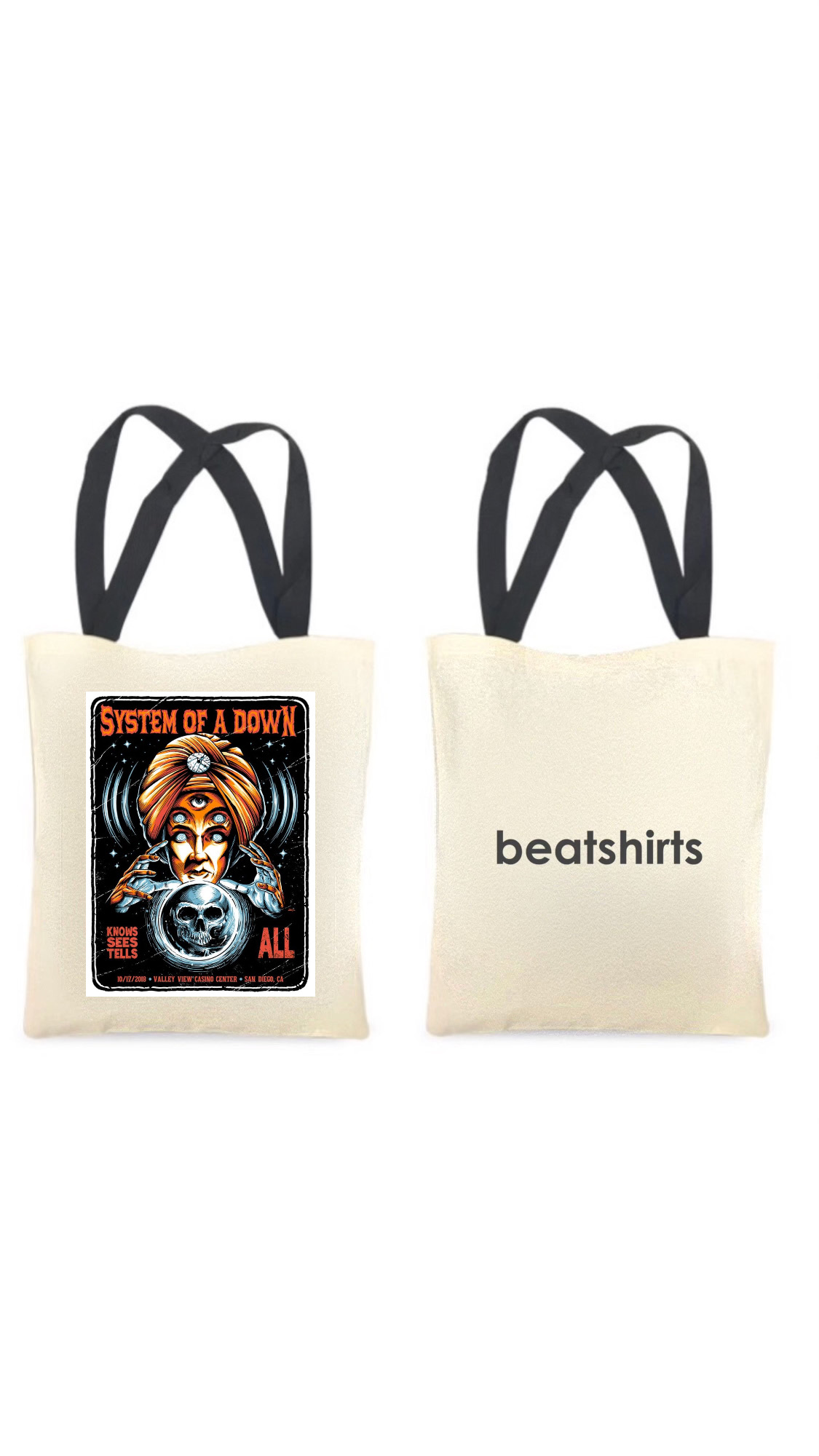 Ecobag com alça preta - 100% algodão - 30cmx40cm - SYSTEM OF A DOWN